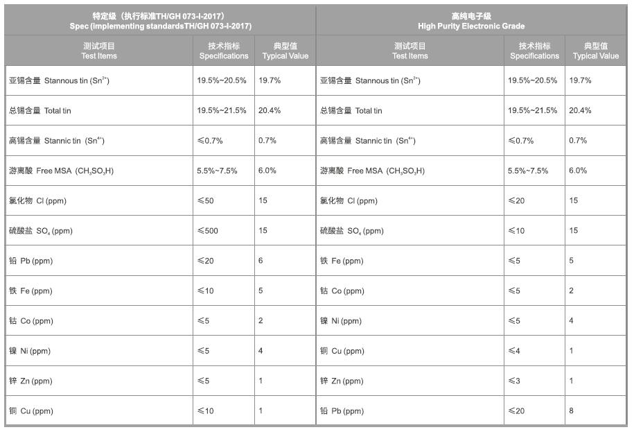 錫含量高,游離酸含量低,有機(jī)雜質(zhì)及金屬雜質(zhì)含量低;